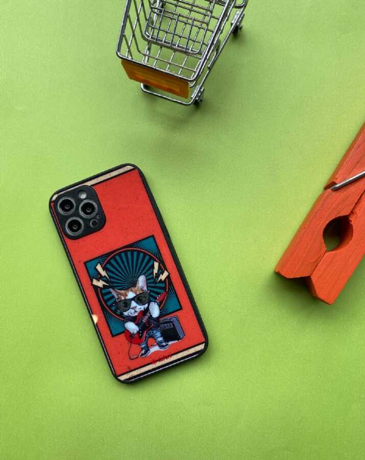 Dafoni Art iPhone 15 Guitarist Cat Kılıf